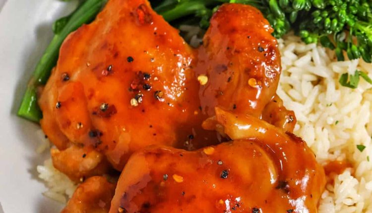 Tender chicken thighs are simmered in a tangy-sweet apricot glaze that’s both easy and delicious.