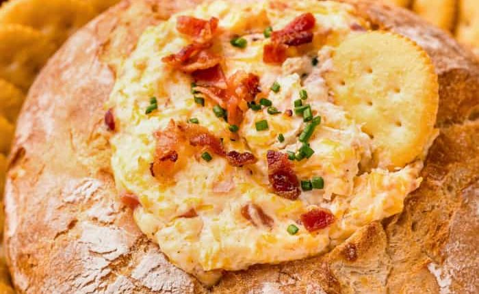 Hot Bacon Cheddar Dip (in a bread bowl)