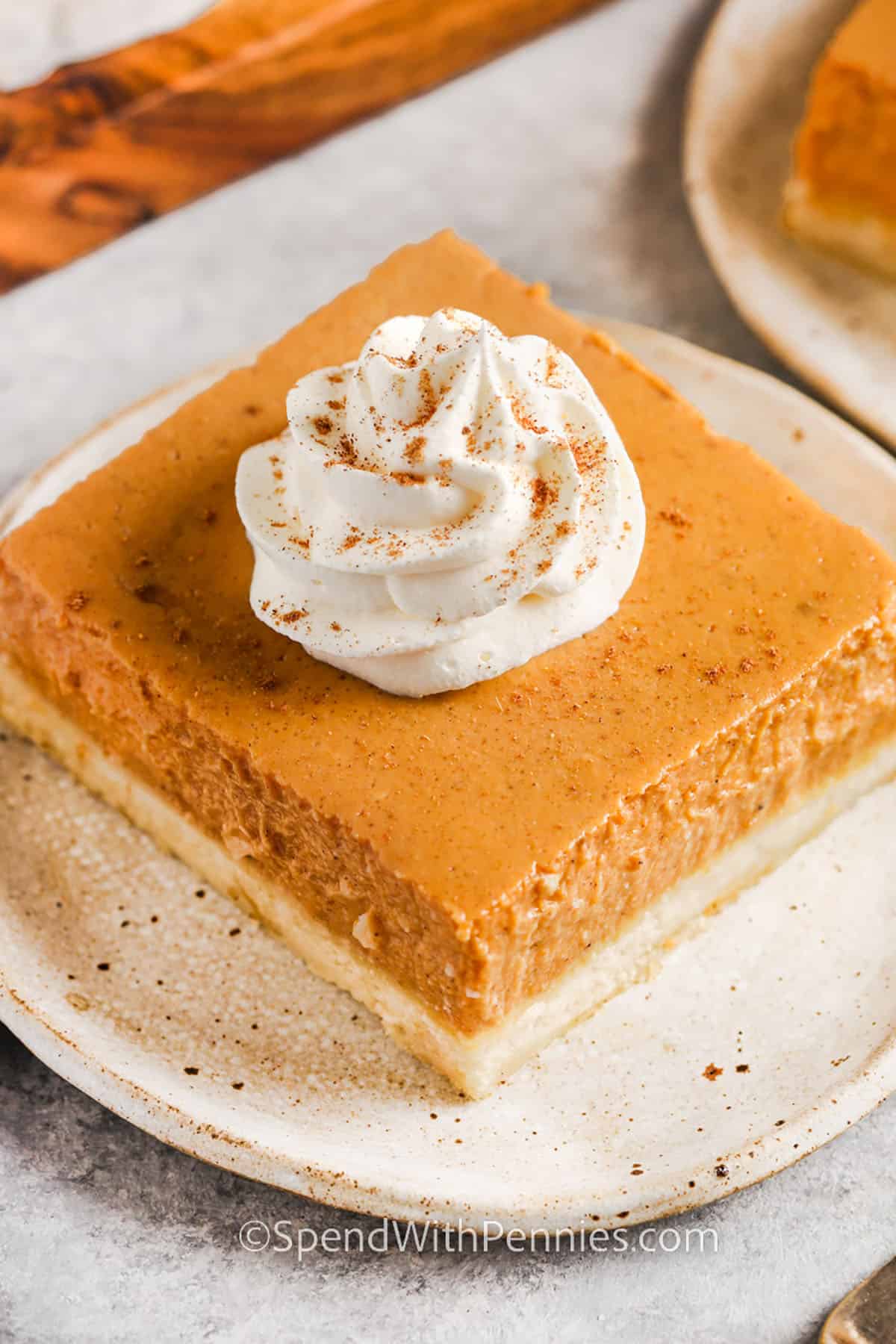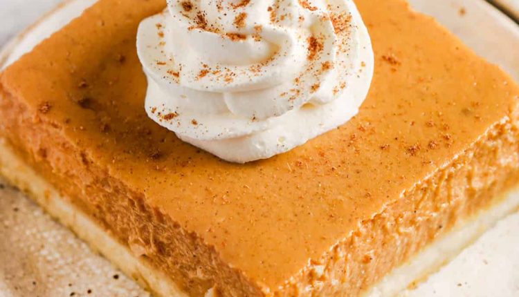 Treat yourself to these decadent pumpkin pie bars with a blend of creamy cheesecake-like filling and the cozy taste of pumpkin!